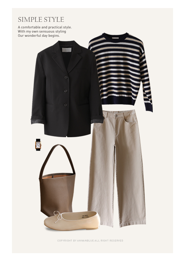 ¸£³× classic JK / ¾Ú¹ö stripe knit / ¸¶°¡·¿ cotton pants